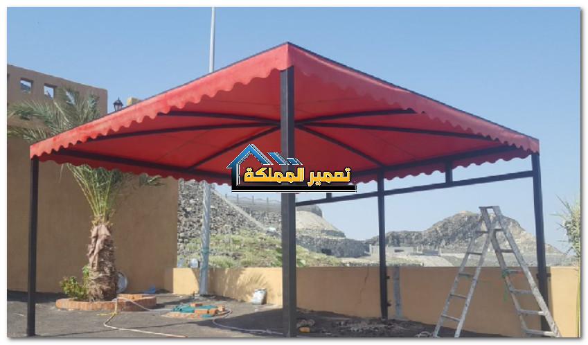 - مظلات حديد مخصصة للحدائق ذات تغطية قماش سعر المتر المربع يتراوح من 100 إلى 150 ريال.
